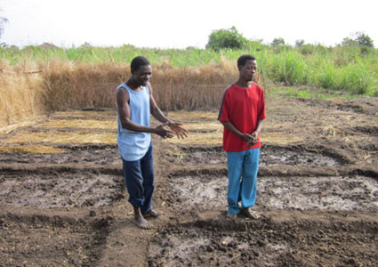 Self-help community groups – In Muengwa, Carlos Domingo and Santos Vasco wanted to form their own group when they saw that the conservation farming techniques introduced by World Renew’s partner IRM-RDD in 2010 were better produce. When their group started last year, the new group then invited IRM-RDD to train them on these “new” farming techniques. This group of 64 members (18 men and 46 women) created a 20×20 meter demonstration plot and learning center where each learner can practice, and then implement the new farming techniques on their own farm. The group has also received loan for a treadle pump and seeds from IRM-RDD to encourage their efforts. At the time of our visit, when I last visited this group, they had already built some irrigation basins and were raising seedlings for farming in the coming dry season.