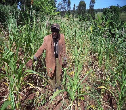 He lives with his aging wife and works as a farmer. He does all his own farm work together with his family, raising crops on his two acres of land, rearing chickens, and tending to his local breed cow. Mr. Irungu lives in South Muranga County in central Kenya, where World Renew through its partner ADS Mt. Kenya (ADS-MK) has been implementing a Canadian Foodgrains Bank-funded food security program for the past three years.