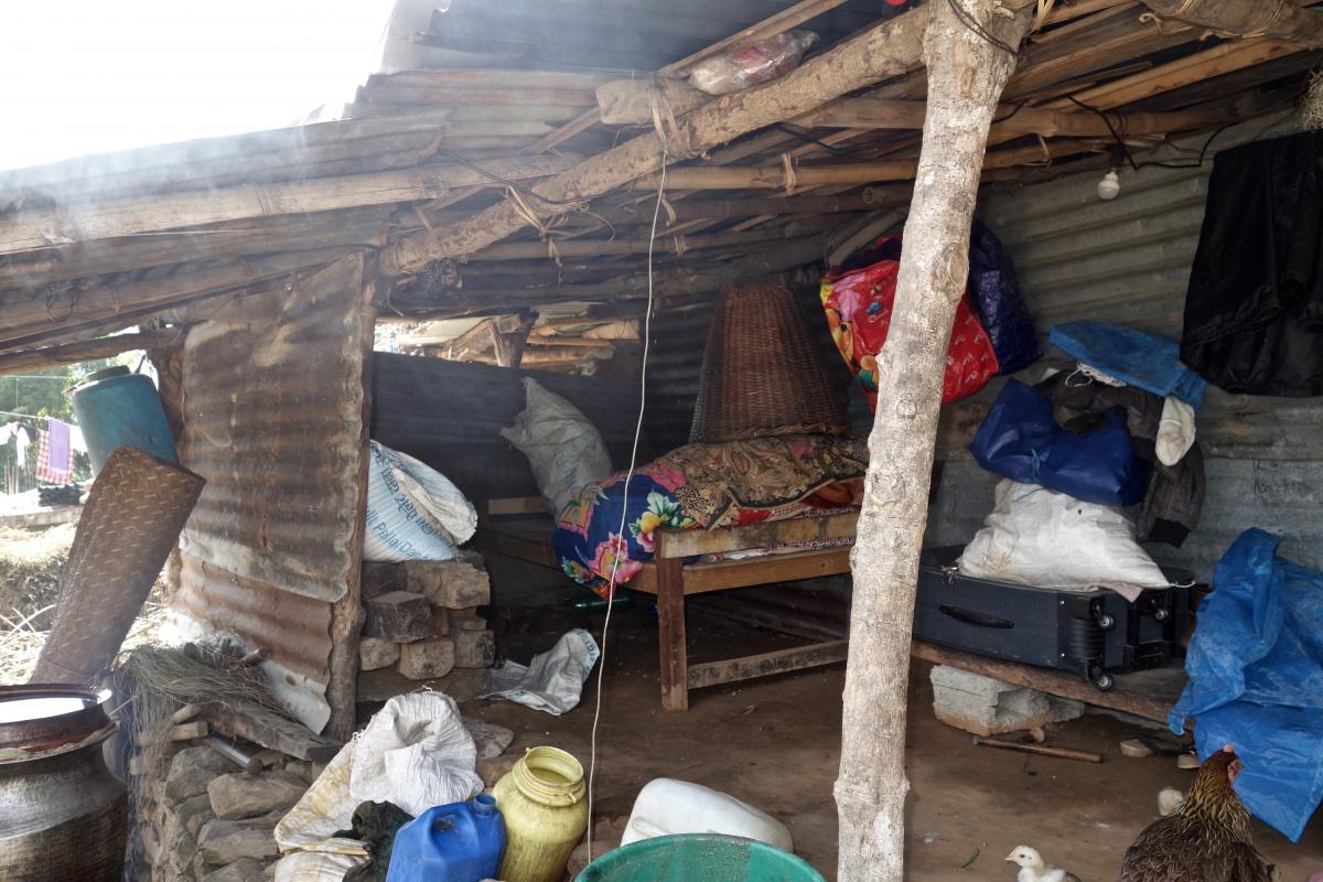 95 year old Sanu Maya Tamang has been living in a lean-to attached to her daughter’s house ever since her house was destroyed by the earthquake 1 ½ years ago.
