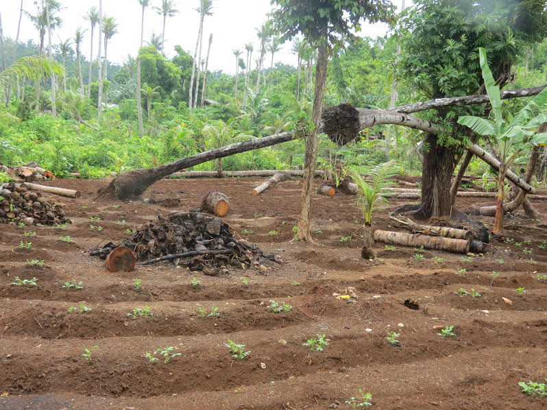 Besides supporting livelihoods in coastal barangays, World Renew is also responding to needs of inland communities that primarily relied upon farming as their source of income. The problem is that most of these families farmed coconuts before Haiyan and all the trees were torn out or destroyed by the storm. You can see this damage in the picture I took in November 26th, not long after the typhoon. Even if we planted new trees, it would take 7 years before families could harvest new coconuts. To help these families more quickly, World Renew is embarking on an intercropping venture, growing vegetables in between the coconut trees. We have provided families with tools to clear the land and seeds to plant. They are now starting to grow cash crops.