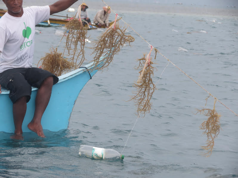 I had the fun adventure of going by boat out 2 kilometers to visit the 50 hectares of seaweed farming that we helped start up. For this project, we distributed 2,000 kgs of seaweed seedlings and the nylon lines and floaters so that families could set up 4-5 lines each, 80 plants to a line which can yield 10kgs of seaweed in 45 days. If these families sell the fresh seaweed they can earn around 30 cents per kg, if they sell dried seaweed it can generate $1 per kg. One seaweed farmer in 45 days could make $50.00 extra with very little work.