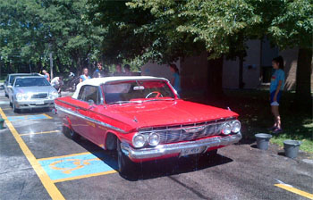 Braden and the group also enjoyed the opportunity to wash some classic and expensive cars—including a Porsche and a 1961 Chevrolet Impala!