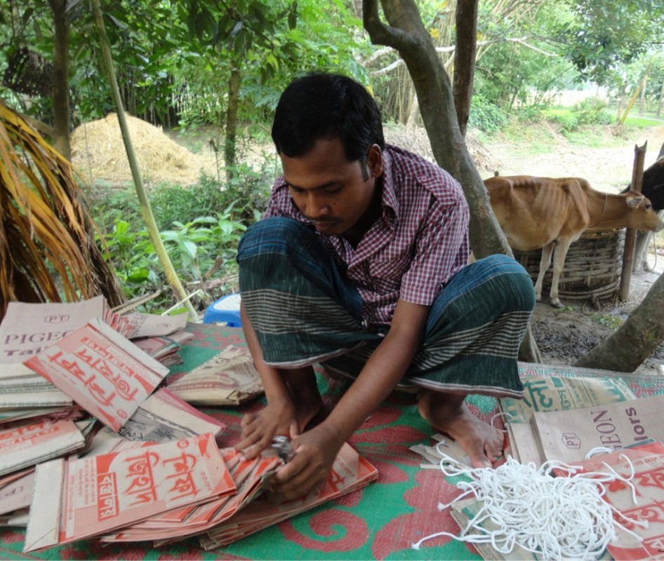 BANGLADESH: Bokul, a disabled man is still able to make an income by making paper bags PHOTO CREDIT: Lalmohon Bormon
