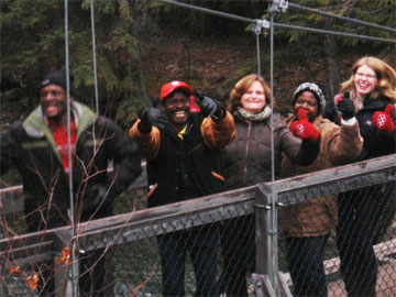 On their first morning in Edmonton, AB, Justin Kadyeni, William Mawalela, and Elizabeth Banda woke up to snow.“It was really very fitting,” said Tracy Apoll, of Edmonton about the three visitors from Zambia, “that they’d wake up to a blanket of snow on their first morning here.” The three individuals from Madzimoyo, Zambia had arrived in Edmonton at the beginning of November in 2010 for a two week visit with members of The River Community Church. The purpose of their trip was to get to know their Edmonton brothers and sisters and learn to understand their life better. While the snow only lasted two days, it was a memorable introduction to Canadian life.