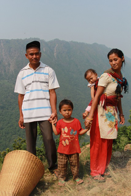 With a baby on her back, and three-year-old holding tightly to her hand, Bimala explained that their oldest daughter had gone to school that day, studying outside because the school building had also completely collapsed in the earthquake.