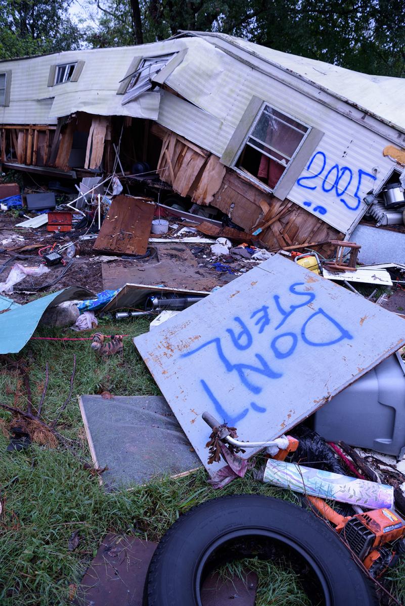 Traveling through the Fairfield Harbor and Woodrow neighborhoods, as well as the outlying towns of Trenton and Pollocksville, stories of the hurricane and its toll were fresh on people’s minds. The idea of life returning to normal seemed distant. The recurring scene of debris from gutted businesses and homes lined the streets. Every home and building appeared to have been touched by Florence in a manner that changed the resident’s lives. Nearly all of the buildings appeared to be devoid of life. With the contents of their homes and livelihoods ruined by floodwater, most people had moved away to stay with family and friends. Few remained, either beginning the rebuilding process themselves or, with nowhere else to go, still residing in their damp and damaged homes.